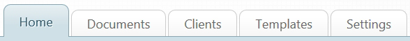 HotDocs Document Services has been designed for easy navigation. Tabs across the top of the page provide quick access to the main areas. Home, Documents, Clients, and Templates are available to all users. The Settings tab is visible only to site Administrators.